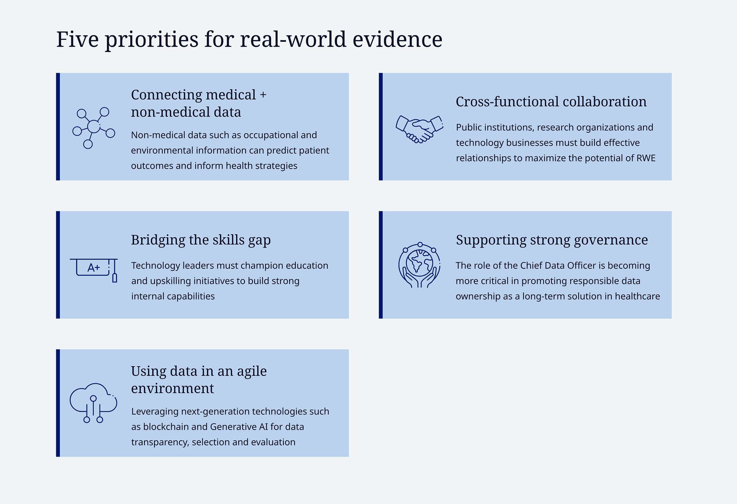 In terms of resources, there’s a persistent challenge of a skills gap in effectively utilizing RWE, particularly in less mature markets like Japan and Asia. Technology leaders have the responsibility to champion education and skills development in this area to build strong internal capabilities.
