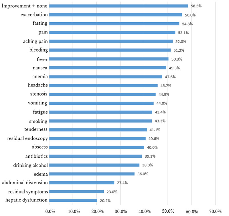 Furthermore, in the evaluation using other indicators, keywords such as "exacerbation," "pain," and "fever" showed relatively favorable results compared to other keywords. Therefore, these keywords can be considered as candidates for characterizing treatment resistance.