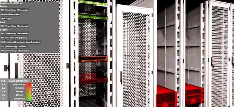 This allows information such as temperature, humidity, CPU consumption, and PUE (Power Usage Effectiveness) to be stored and then linked with real devices so that they can be synchronized in real time with their physical counterparts.