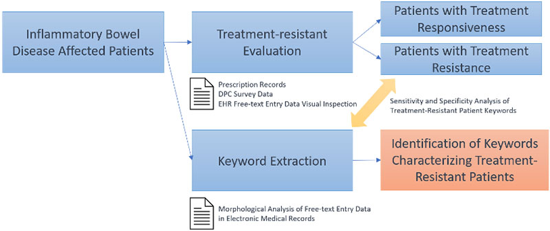 EHRs data was extracted from the Millennium Medical Records, which contained physician progress notes, clinical summaries, and other free-text information. Natural language processing (NLP) was leveraged to detect specific keywords that physicians use when documenting poor medication response in IBD patients.